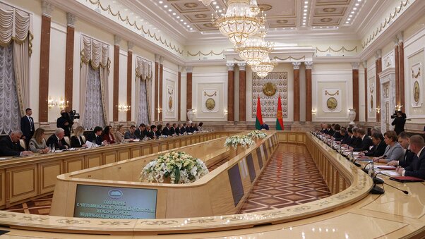 Кіраўнік дзяржавы заўважыў, што ў грамадстве ўзнікае ўсё больш пытанняў у сувязі з тым, што Захад пачаў эканамічнае ўдушэнне Беларусі. "Не сакрэт, ідзе гібрыдная вайна. Вайна даўно пачалася. Не толькі супраць нас. Перш за ўсё - супраць Расійскай Федэрацыі, і мы звяно ў гэтым націску на Расію. Больш таго, мы аказаліся на пярэднім плане. Таму нам дастаецца першымі, і не проста. Мы гэта з Прэзідэнтам Расіі бачым, ацэньваем і дзейнічаем адпаведным чынам, адэкватна", - падкрэсліў ён.