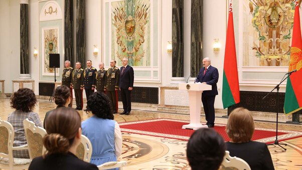 "Ад усяго сэрца віншую вас з заслужанымі ўзнагародамі. Жадаю моцнага здароўя, дабрабыту і натхнення. З надыходзячым Днём Перамогі! Няхай гэта ўсенародна любімае свята і асаблівая цырымонія, прымеркаваная да яго, служаць для вас пуцяводнай зоркай на шляху да новых прафесійных і жыццёвых поспехаў", - пажадаў Кіраўнік дзяржавы.