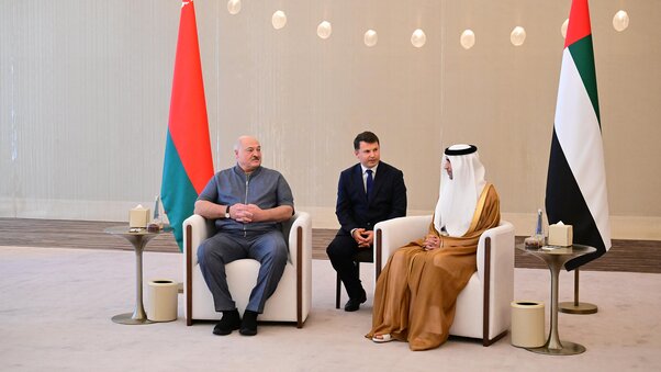 "Я вельмі шчаслівы, што ў нас атрымалася сустрэцца", - вітаў Прэзідэнт ААЭ свайго беларускага калегу.