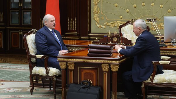 Belarus President Aleksandr Lukashenko heard out a report of Defense Minister Viktor Khrenin on 18 January.