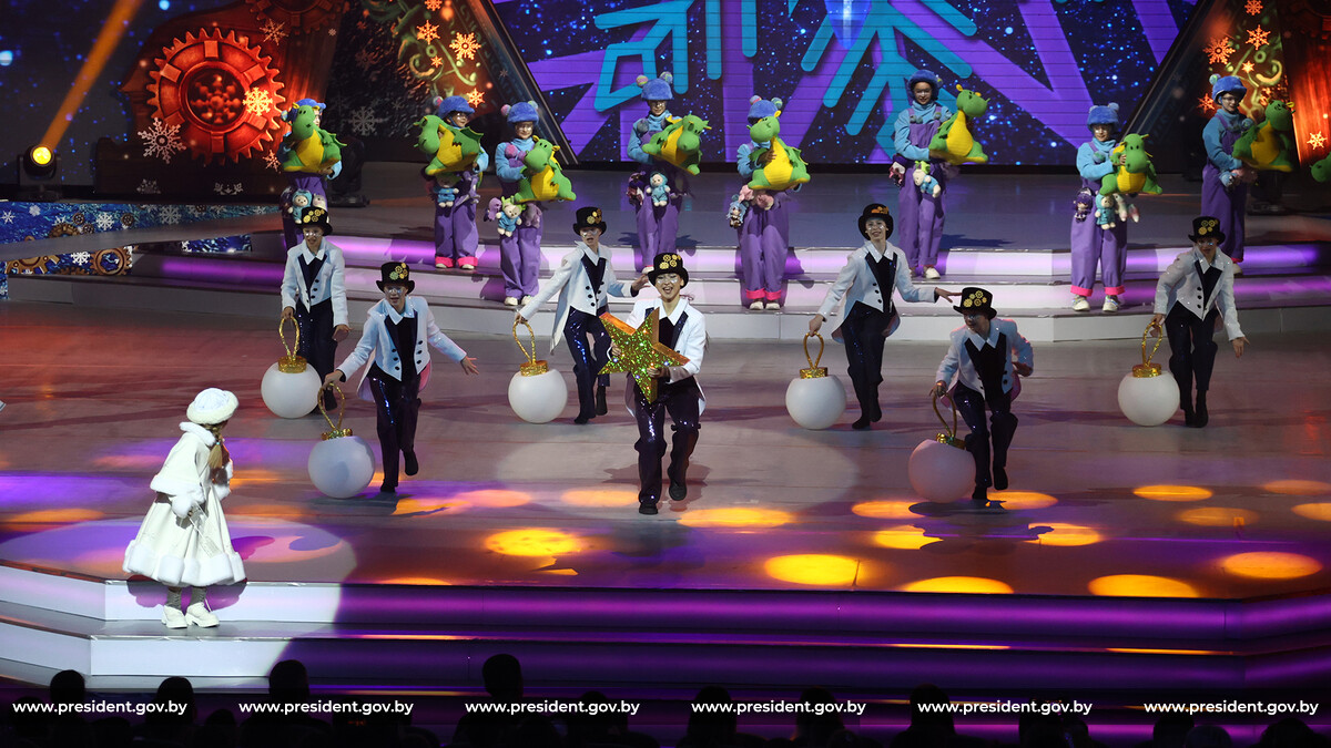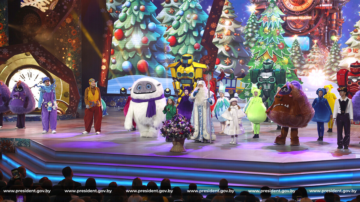 "Во Дворце Республики собрались наши дети - белорусские, российские, украинские, палестинские, латвийские и многие другие. Всех вас от имени нас, взрослых, и от имени всех детей нашей страны я хочу приветствовать в этом зале, поздравить с наступающим Новым годом, поздравить вас с этим большим новогодним праздником. Будьте всегда здоровы и счастливы, больше улыбайтесь, верьте в силу добра. А мы будем рядом с вами", - сказал Александр Лукашенко.