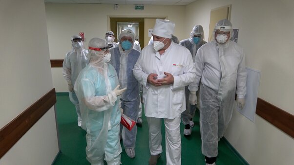 Глава государства также пообщался с представителями трудового коллектива больницы и пояснил, в связи с чем в последнее время посещает ряд медицинских учреждений, где оказывают помощь пациентам с коронавирусом. "Это стиль моей работы на протяжении четверти века. Уборочная, посевная кампания - и я у крестьян. Есть проблемы в зоне промышленности - я туда. Надо что-то продать - я за границу. И так далее. Сегодня самая большая проблема для нашего общества (назовем это проблемой) - это болезнь наших людей, как и во всем мире. Слава богу, и я не устану это повторять, нас она еще немножко пожалела и жалеет", - сказал Александр Лукашенко.