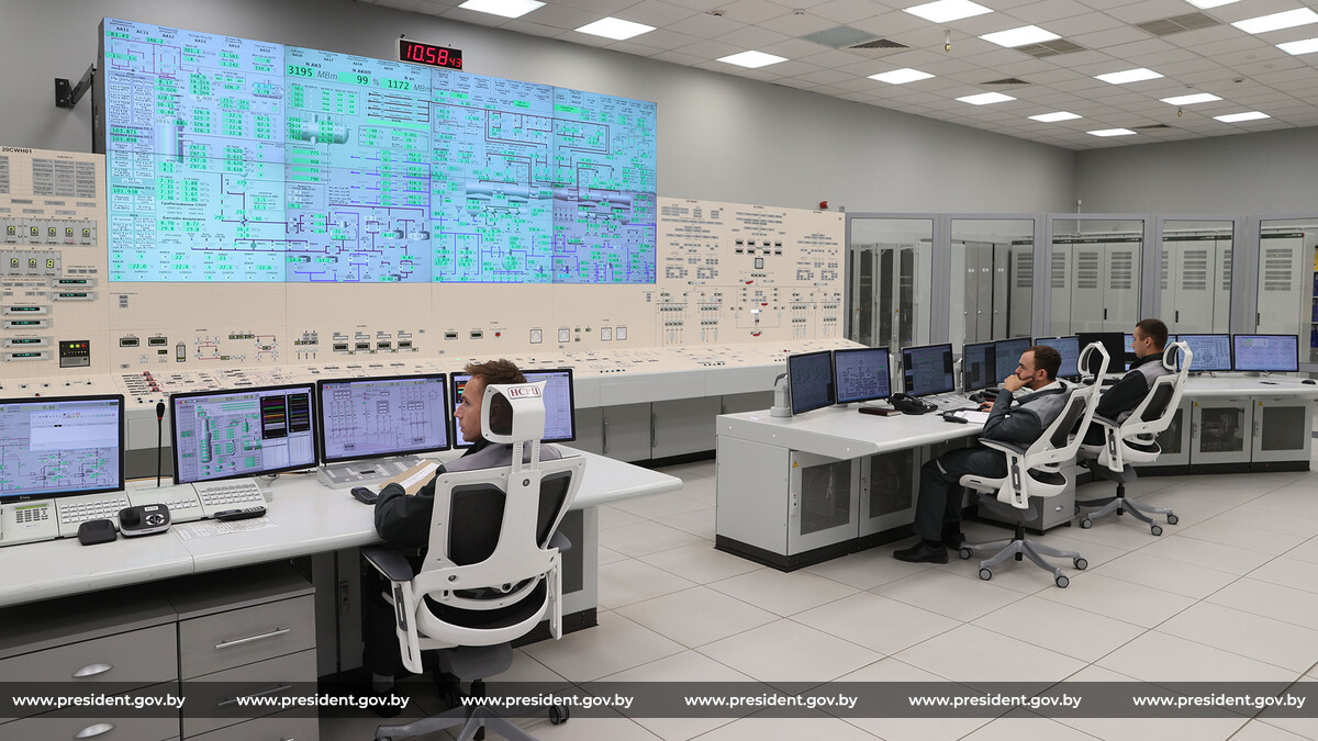 Во время посещения БелАЭС Президент осмотрел территорию станции, посетил пункт управления второго энергоблока атомной электростанции.