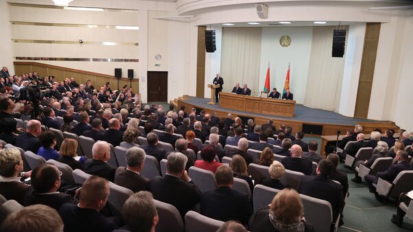 Доклад Председателя правления Нацбанка Павла Каллаура и помощника Президента по вопросам развития финансово-кредитной системы Валерия Бельского